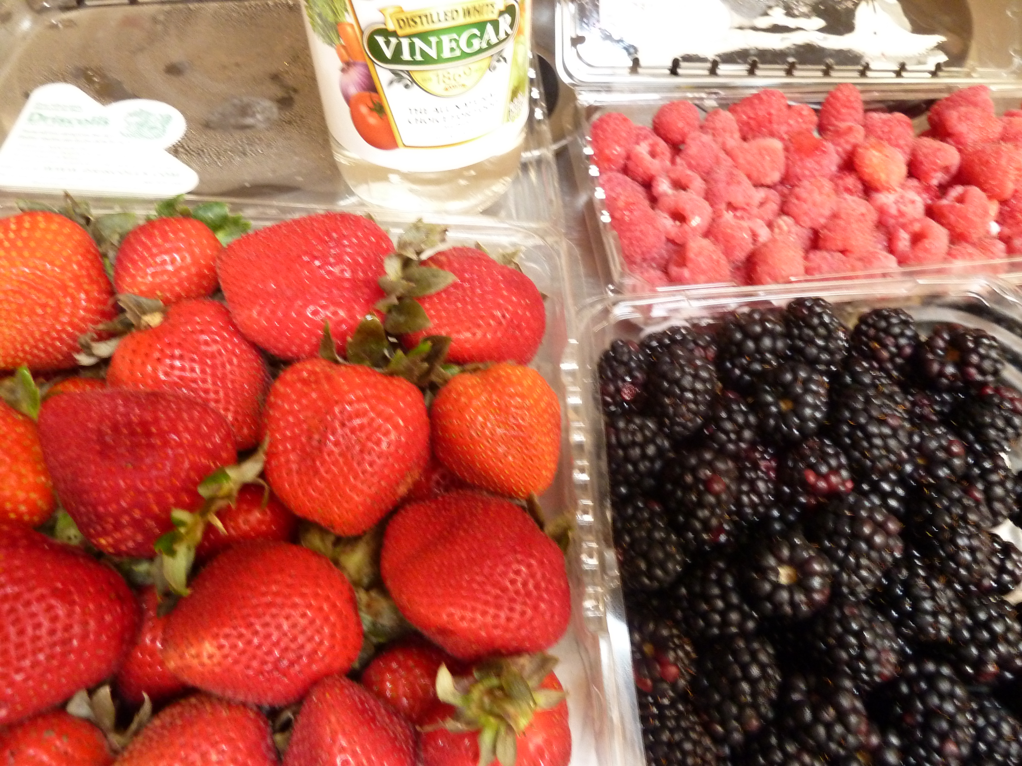 After soak in vinegar wash.  I washed the strawberries, blackberries and raspberries in the wash.