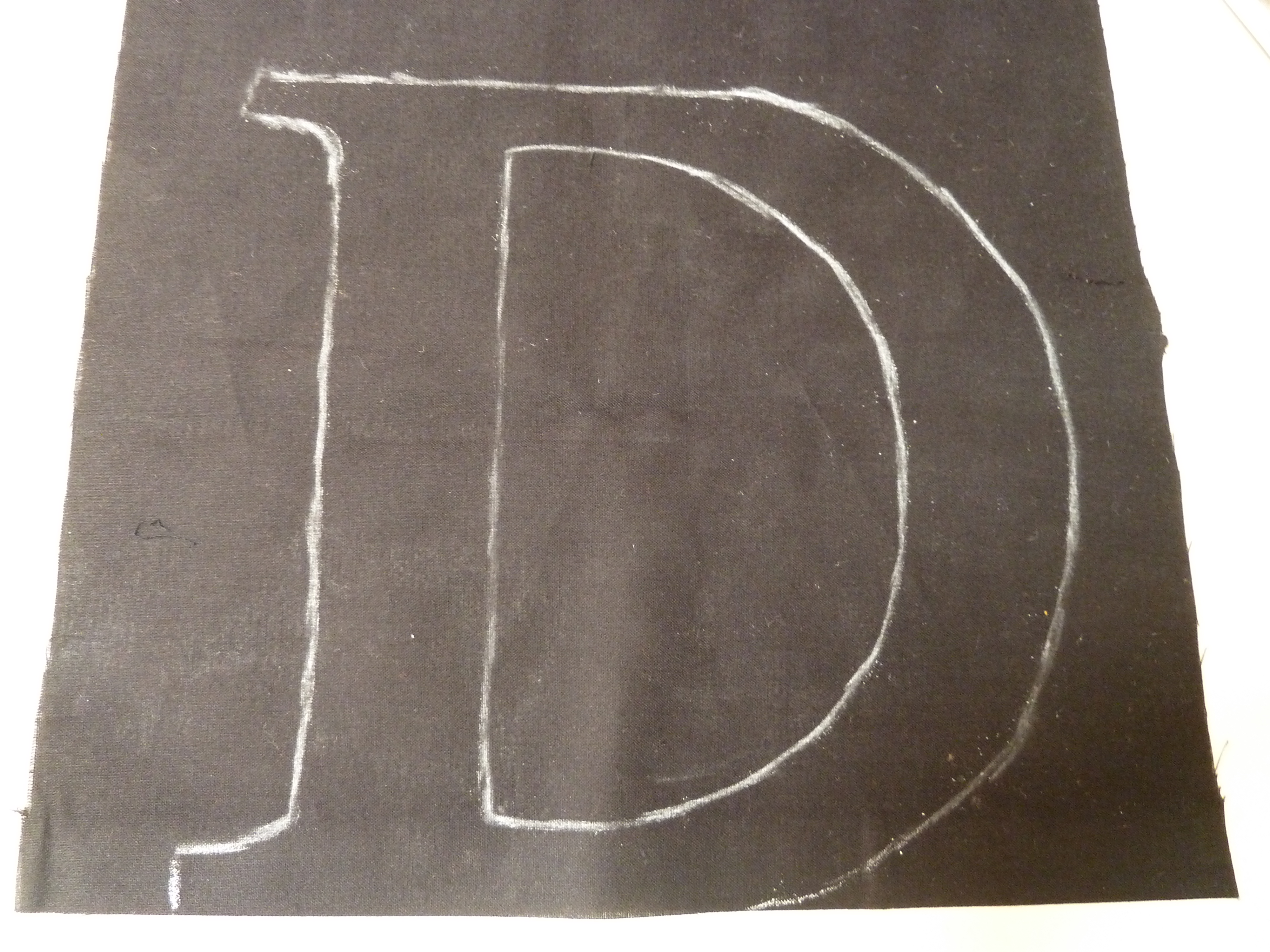 Next trace your letter with chalk on your contrasting fabric.  A fabric marker will work as well but since my fabric was black my marker wouldn’t show up.  Now if you don’t want to deal with the remnant of the chalk dust you can flip your letter over and do the tracing on what would be the back side of your letter.