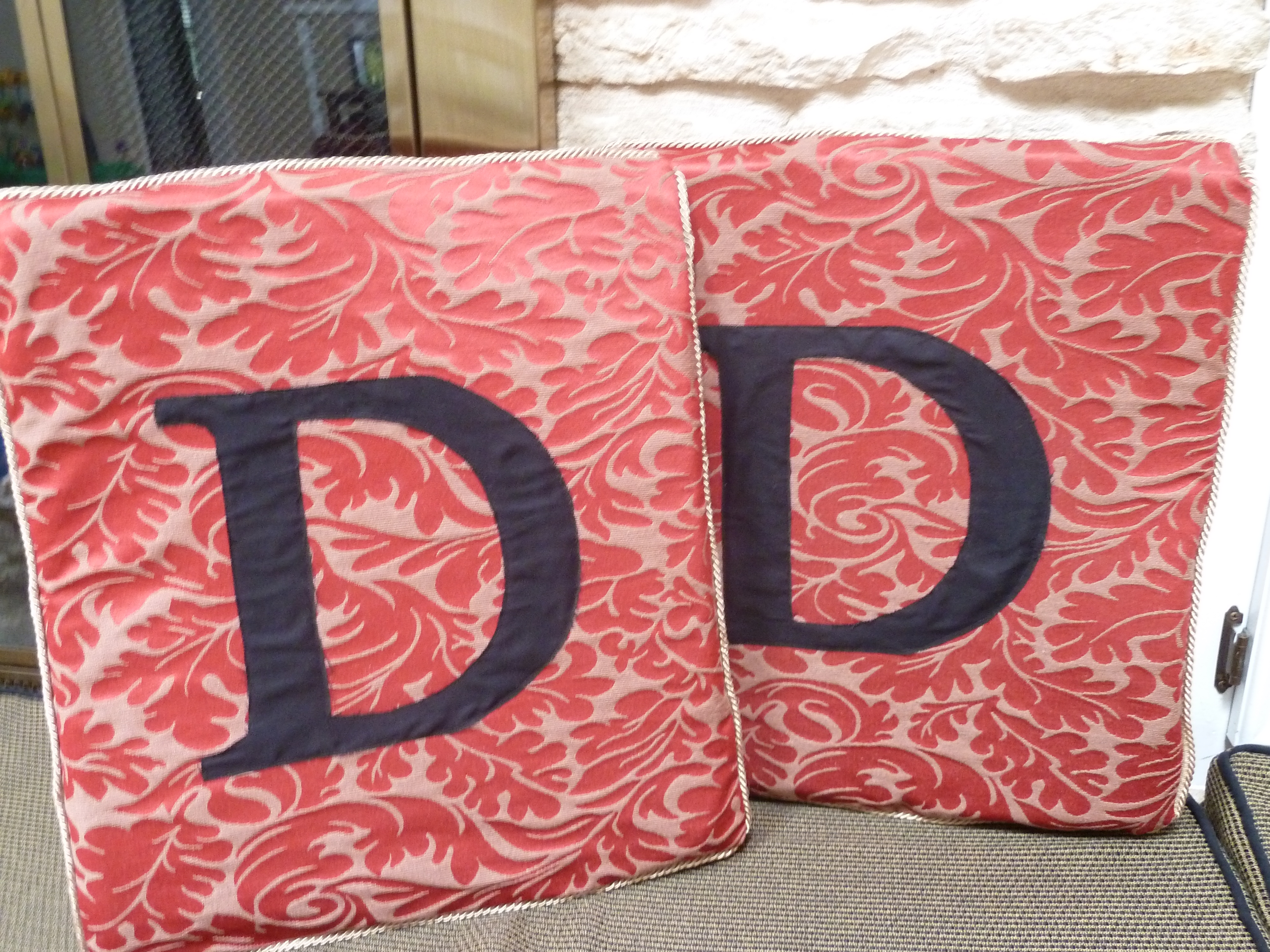 Cut this out and add some strips of the fusible web by following the package directions.  Try and add your web to the edges of your letter which help when you go to sew it down.  Measure equal distance from top and bottom and side to side for placement of your letter on one front piece of your pillow fabric.  Tack your letter down using the other side of the fusible webbing with your iron.
