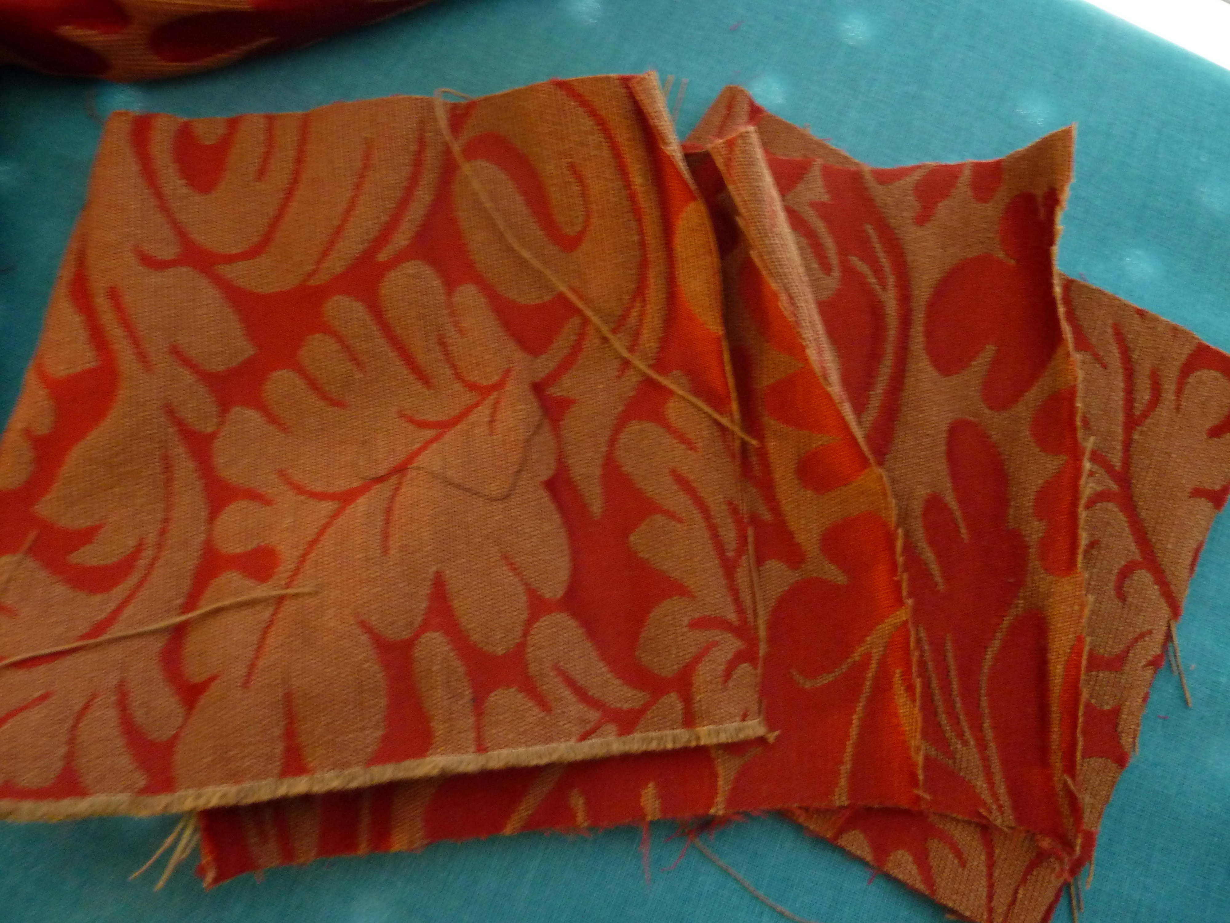 Note–Now you could sew your piping onto one side of your fabric first but that is double work so I chose to do the fast method of sandwiching and sewing.