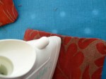 Turn right side out.  On the open 4th side fold over the seam and press.  I found this much easier to do now as opposed to after I put the interfacing into the pocket.