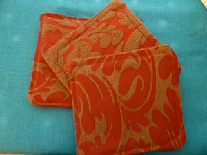 Topstitch as close as you can get to the edge.  I mitered 2 of the coasters corners and played around a bit.  They don’t all have to match but this is where you can get creative and sew different designs like these.