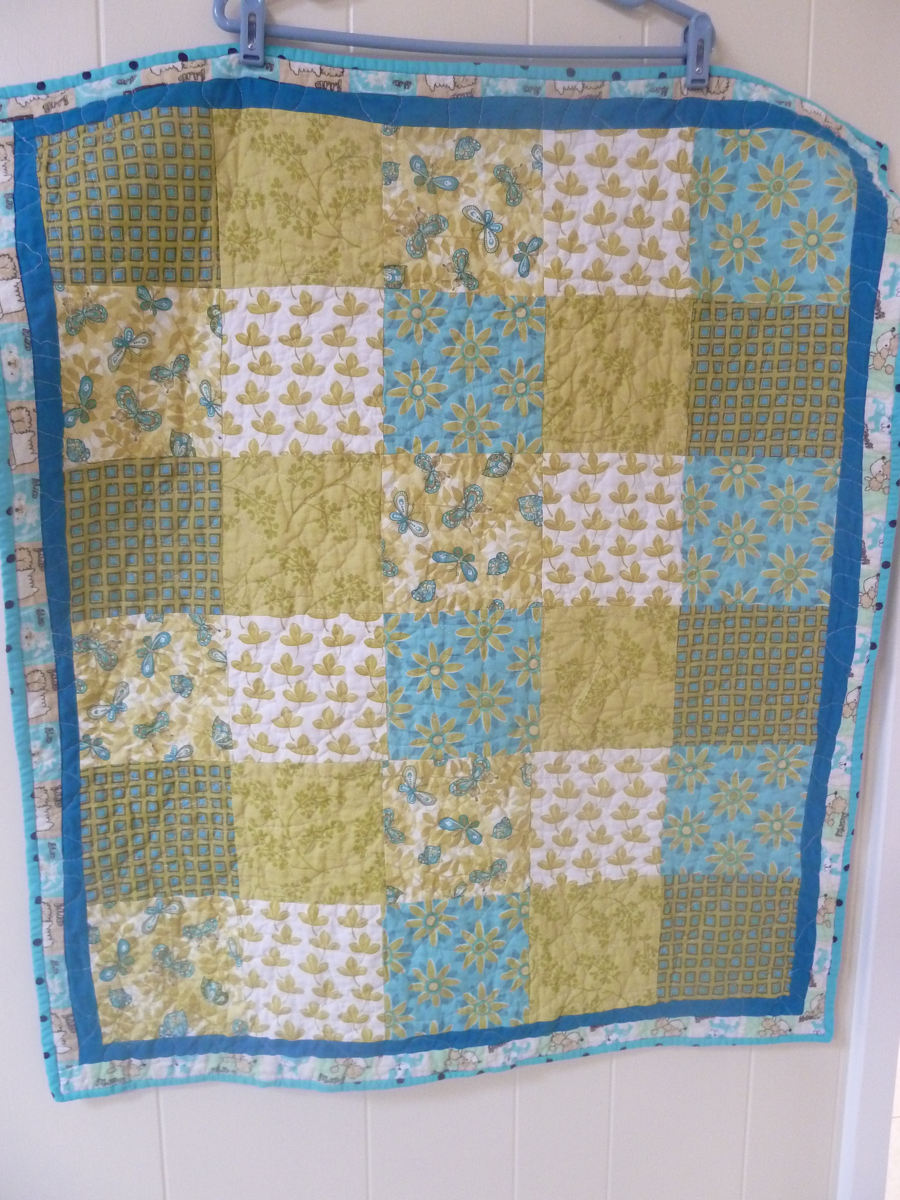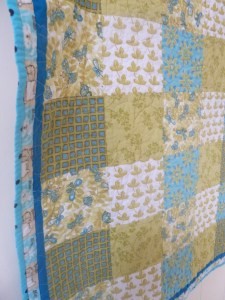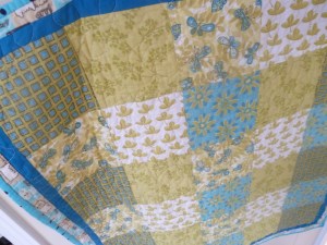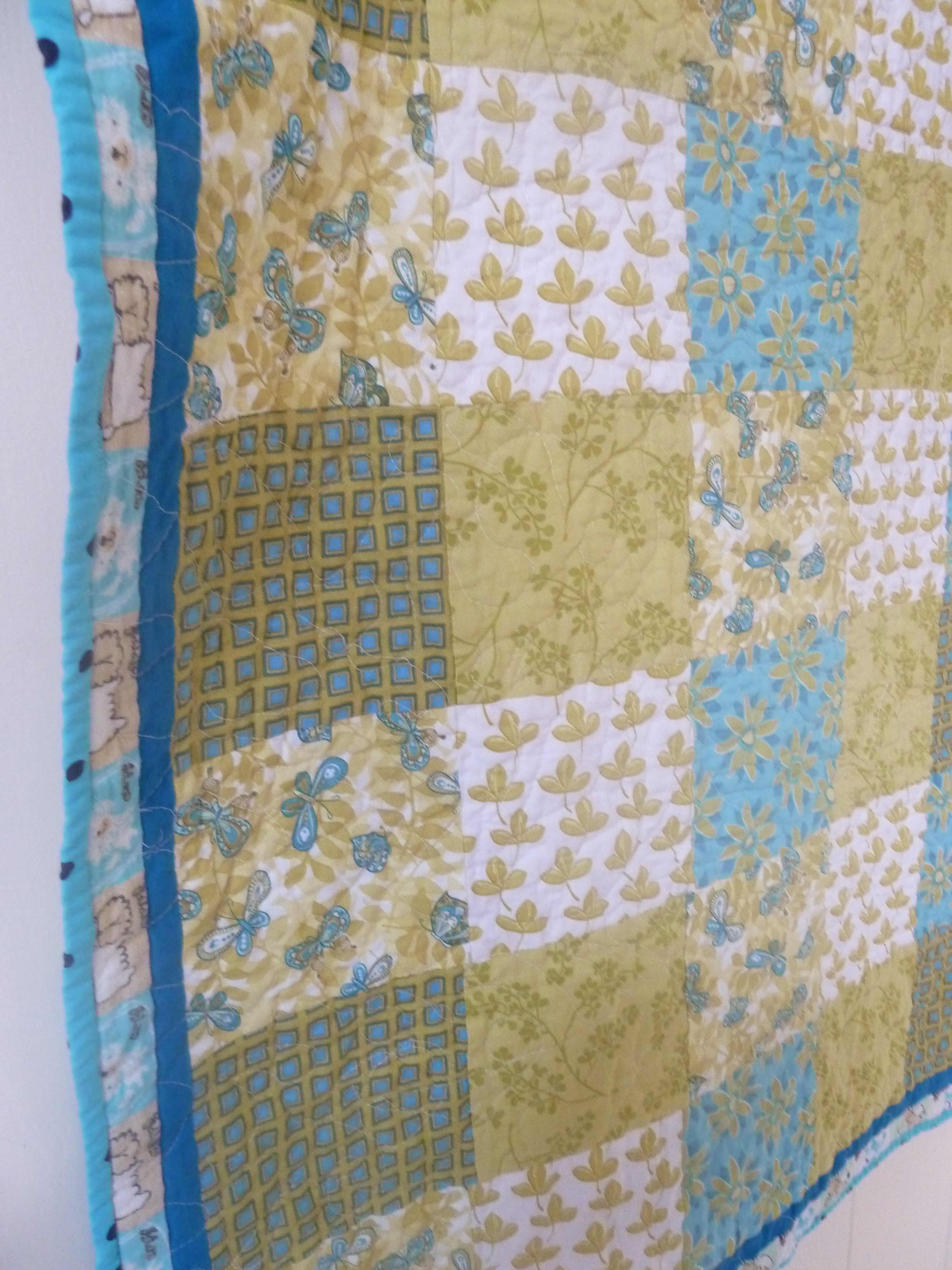 It is a quilt for Quilts for Kids that I started with my friend Cara at one of our sewing circles.  I was dreading the finish of this project simply because I didn’t know how to bind a quilt!  Ok on the other side it really wasn’t that hard.  I watched an awesome youTube video from The Crafty Gemini on binding a quilt.  I highly recommend.  My mom was also in town and gave me a few hints from her limited quilting knowledge.